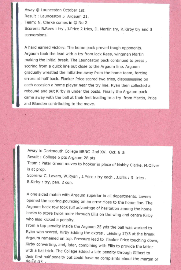 At the PAPPA reunion in December 2018 we were very grateful to be presented with a record of the 1966-67 season by Bill Ryan. Bill was Argaum’s 1st XV skipper that season and kept an account of the season complete with his own summaries and observations from each match.