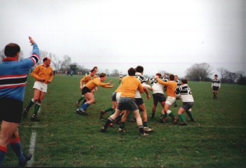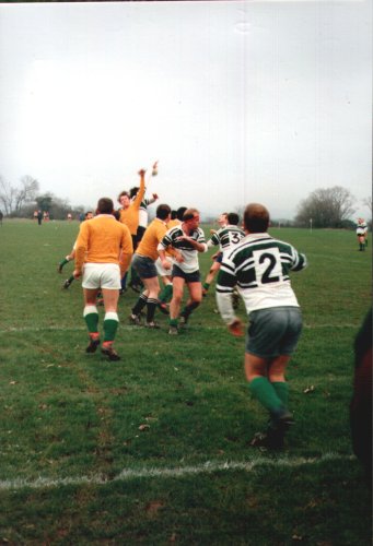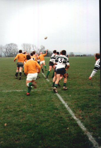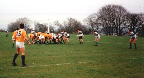 Classic cup action from the early 90s, Argaum winning a keenly contested encounter (exact result unknown) before going on to lose out narrowly to Old Techs in the semi-final. The Argaum team that day : P.Wright, A.Miller, A.Bartrip, M.Hunt, A.Rees, C.Webster, P.Duff, M.Hopper, S.Poole, R.Belli, P.Evans, I.Wall, R.Harpham, B.Haley, J.Giles (capt). Reps: A.Montgomery, P.Willis, R.Searle, T.Bates.