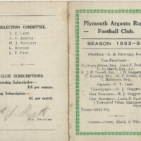 1933-4 is sparse in reports. There are records of defeats by the OPMs twice 3-5 in October and 3-6 in December – Hitchins touching down – 0-6 v Old Suttonians and 3-16 v Albion Reserves. Bere Alston were beaten 33-0 by a team which included Mervyn Hodge centre or full back with a very safe tackle and possessing a good (Welsh) rugby brain and Malcolm Robinson a powerfully built young forward, both becoming regular first team choices. On 3rd February 1934 “Albion get a fright at Beacon Park – Argaum gave Albion a rare going over in the first half leading by a Rowden try converted by Robinson to a try. They hung on grimly for the first 20 minutes of the second half until finally capitulating 5-9”. There followed a 13-9 win over the Prince of Wales Volunteers a club side including John Molland the curate at St Marys Church Plympton. At this stage the club was increasingly having almost exclusive use of the Geasons ground at Plympton.