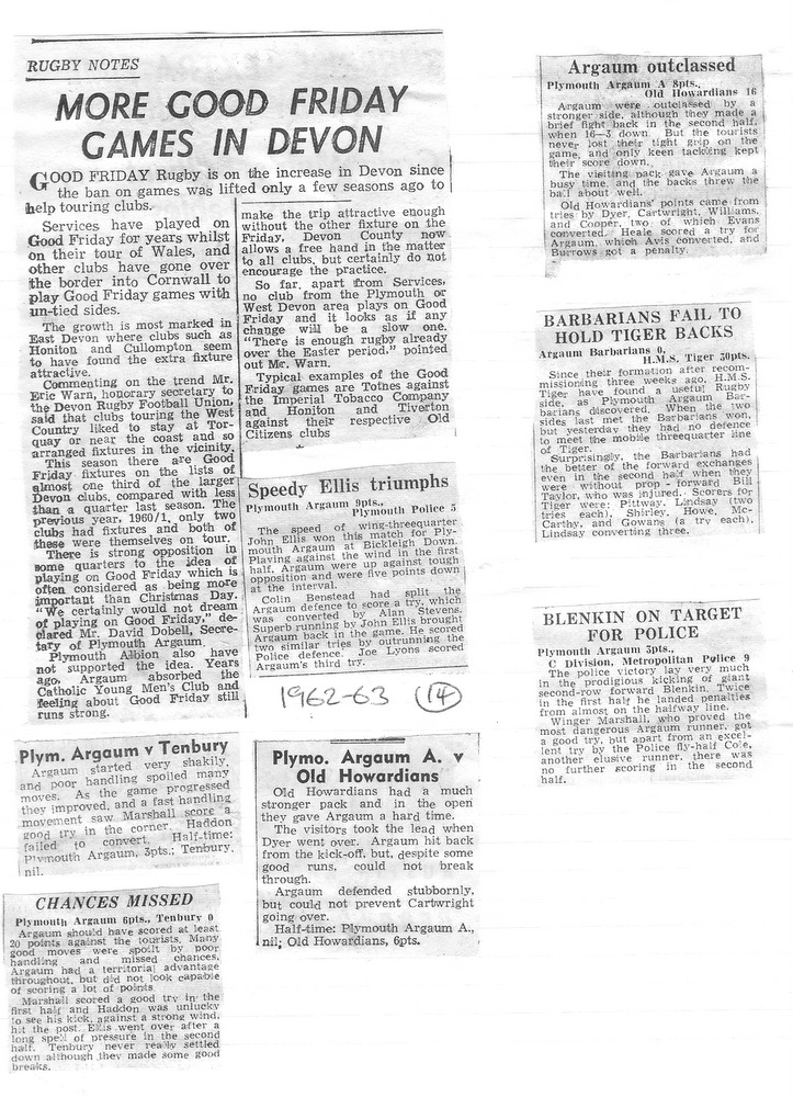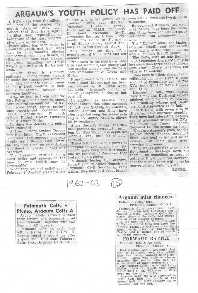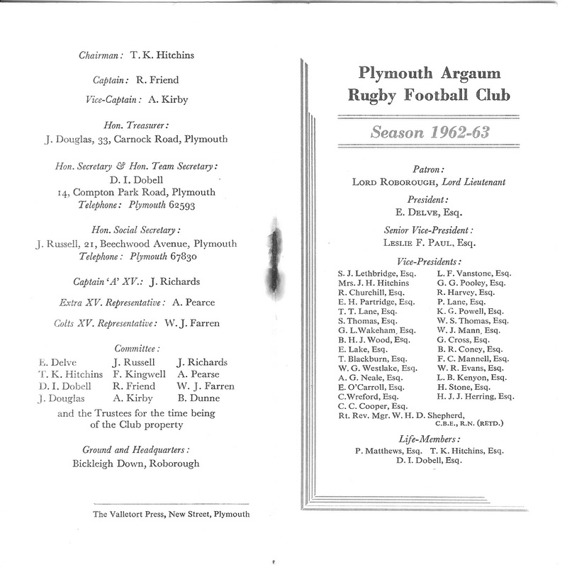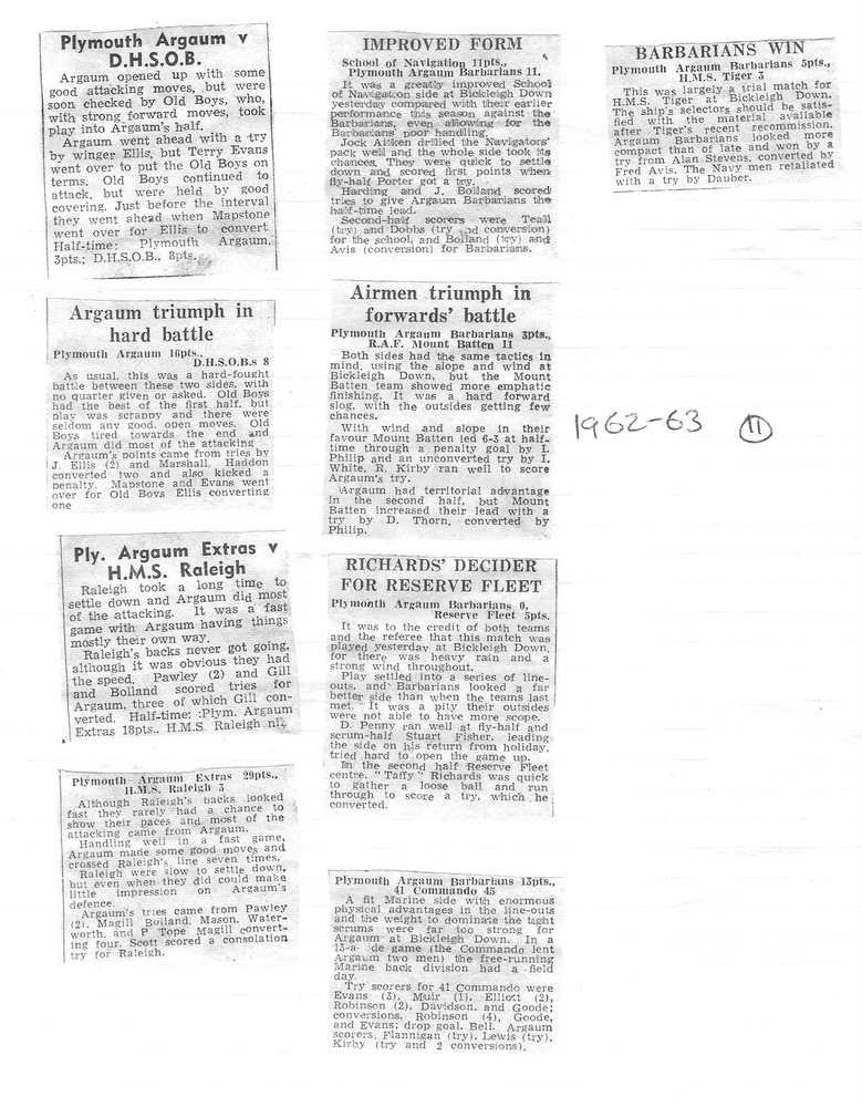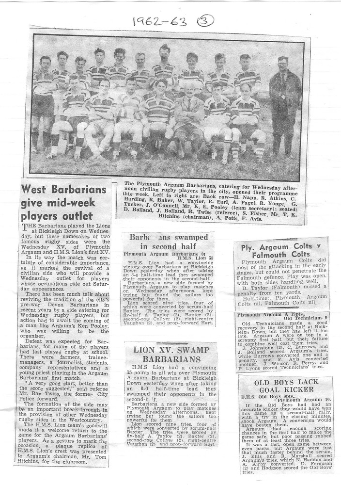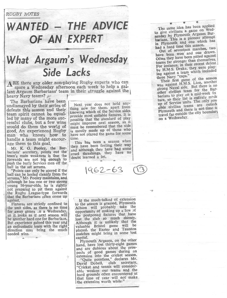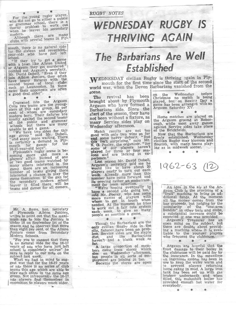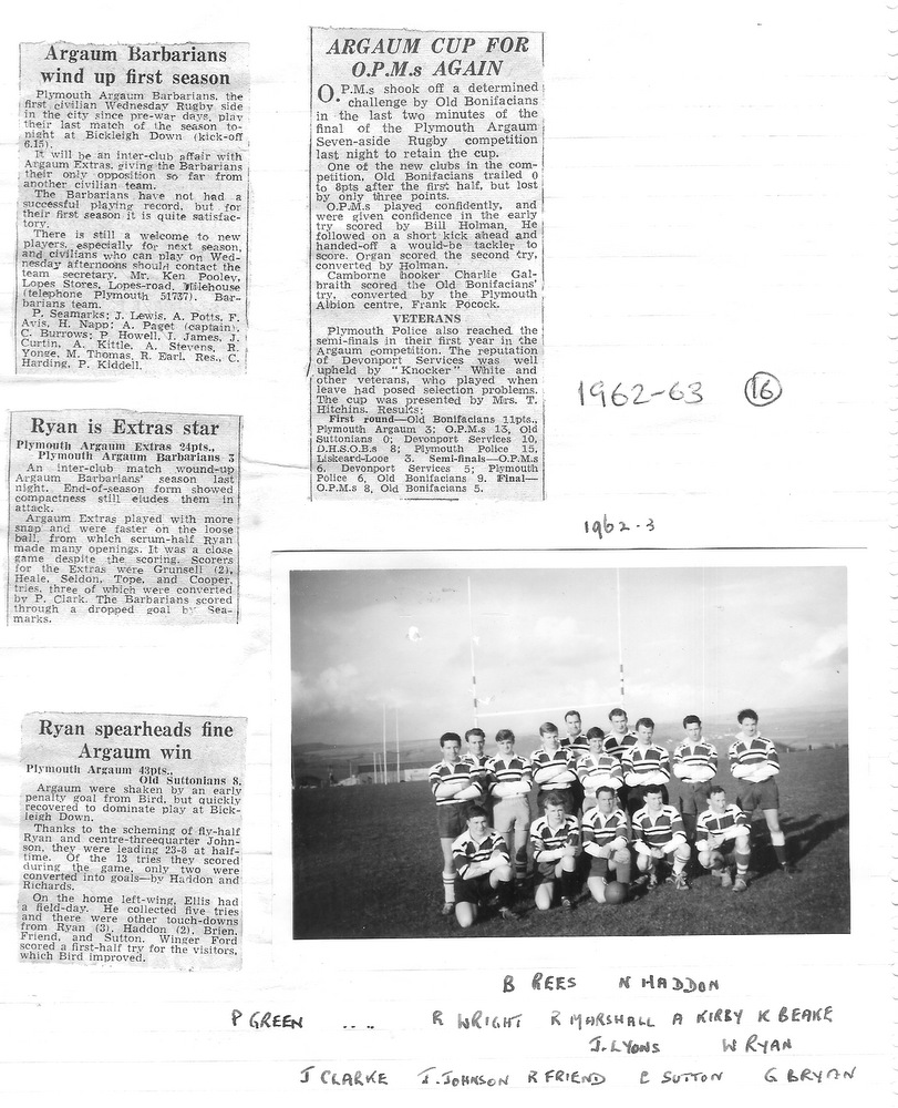The midweek XV – Plymouth Argaum Barbarians – duly came to fruition, owing their title undoubtedly to the Devon Barbarians, who operated in midweek before the war.