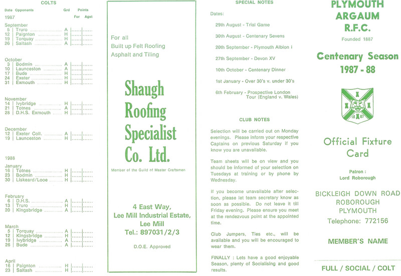Off the field the industrious Mike Pike had taken over as Hon Sec from Ian Ramsay and had to deal with a couple of player transfer disputes with local clubs, something that would rear its ahead again in the coming seasons. Out of interest in relation to one of the club’s current local rivals; a letter from OPOs with notification of their new clubhouse in Tavy Place whilst Argaum seconded a proposal for a new club at Plymstock to join the Devon RFU.
